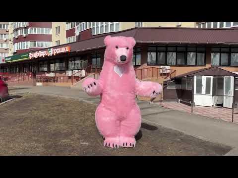 INFLATABLE “PINK BEAR” ANIMATOR COSTUME — 2.4 M (7.9 FT), LONG SOFT FUR, FAN + BATTERY