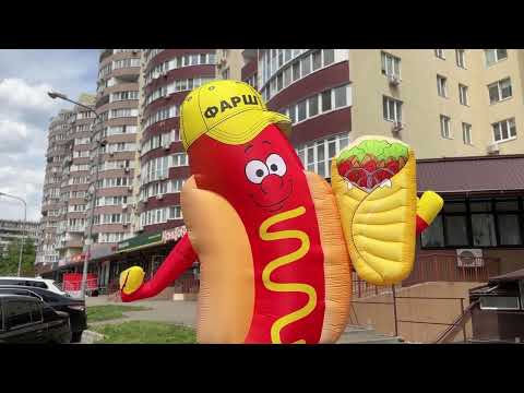 Turn hungry passersby into customers with a playful, waving mascot featuring a hot dog and a shawarma wrap. The tall, kinetic figure runs continuously with a built-in blower—perfect for fast-food stands, street kitchens, food trucks, markets, fairs/festivals, and grand openings across the EU and USA.