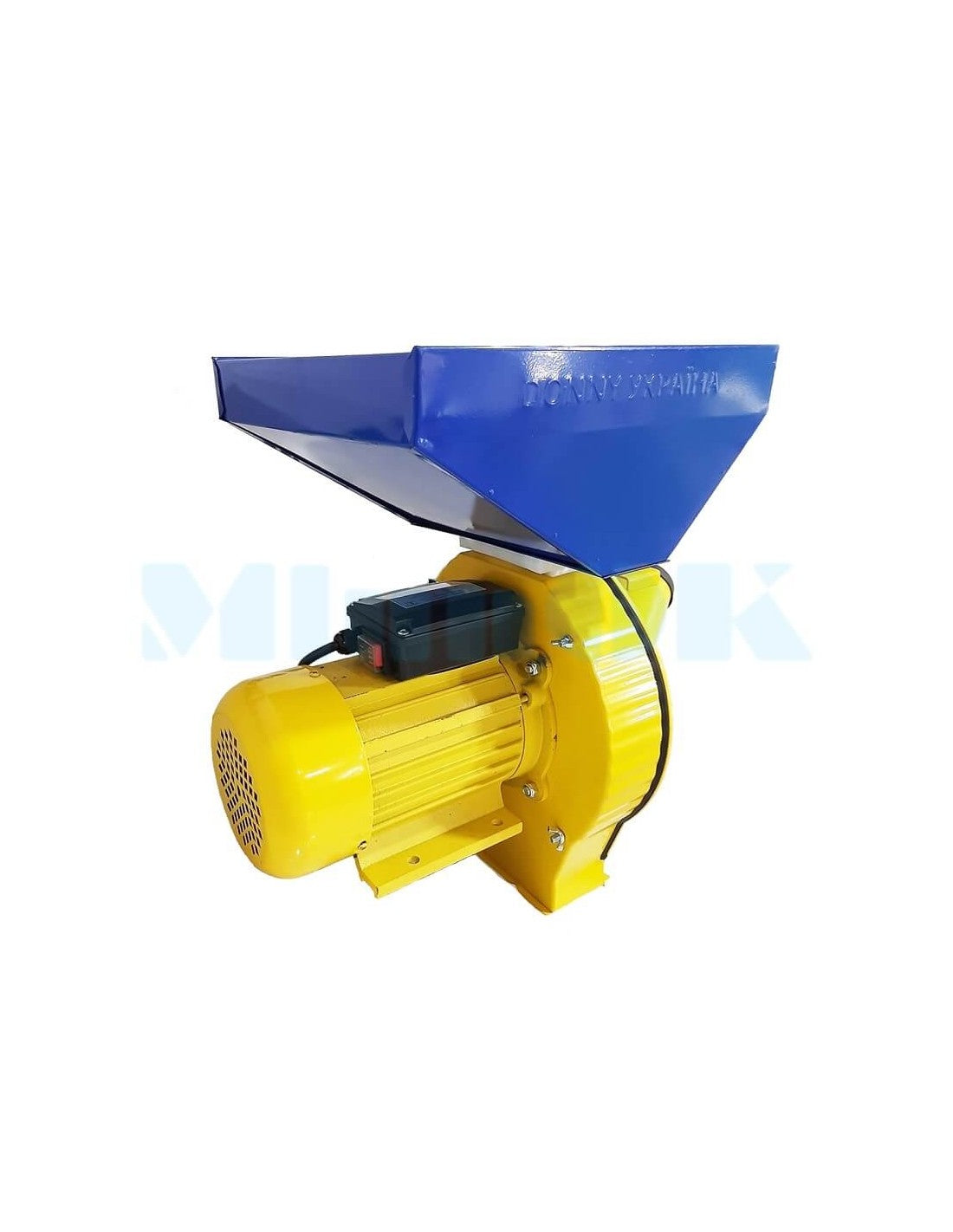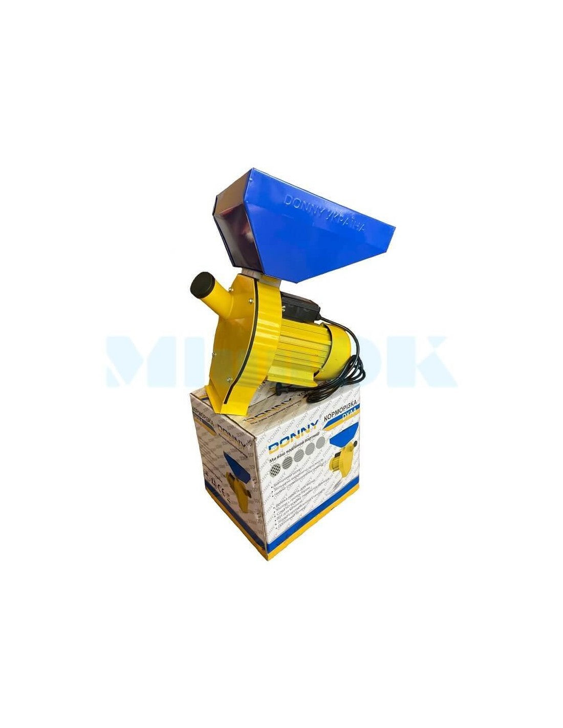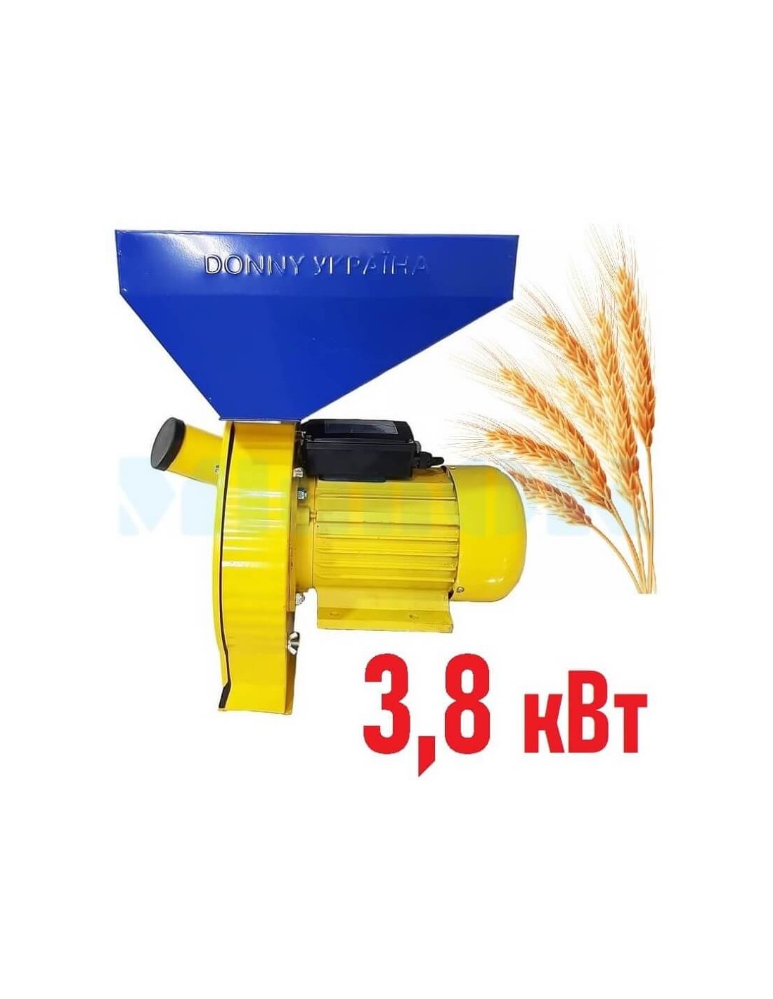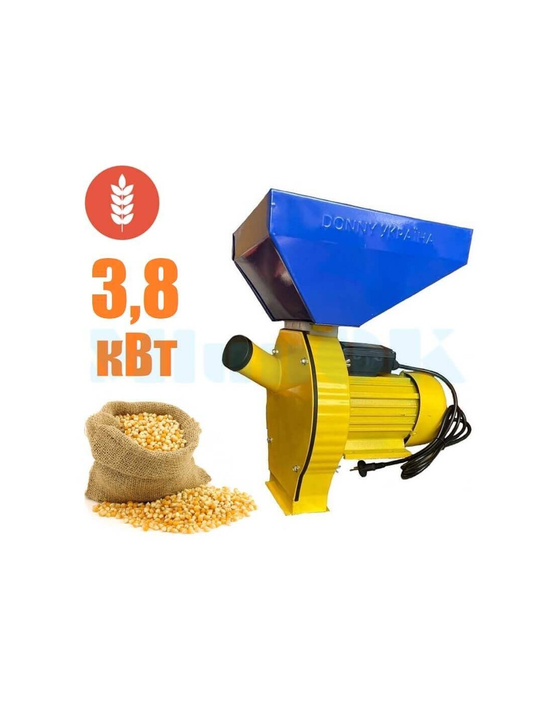 Rozdrabniacz do zboża do przygotowywania paszy dla zwierząt domowych i drobiu w domu ze zbóż, łatwy do zainstalowania w małym pomieszczeniu z gniazdem 220 V. Silnik o mocy 3,8 kW zapewnia dobrą wydajność do 280 kg paszy na godzinę.