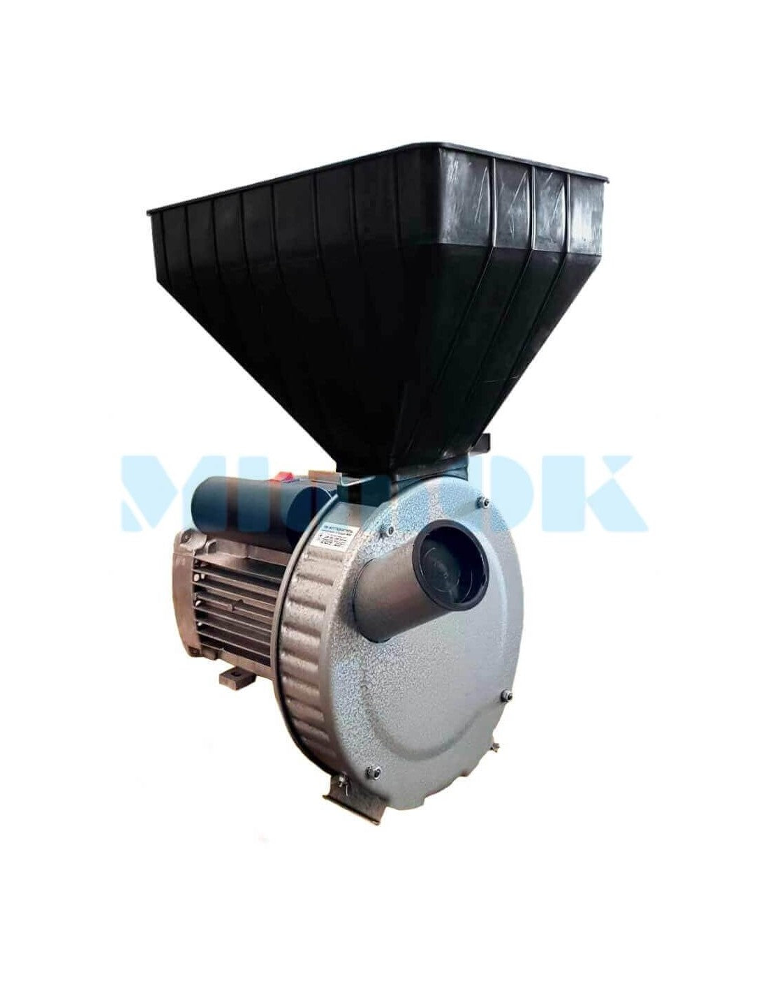 Kruszarka do ziarna składa się z silnika elektrycznego z uzwojeniem miedzianym, obudowy, stojaka na zbiornik oraz zbiornika. Wyposażony w przycisk zasilania. W dnie bunkra znajduje się otwór do podawania ziarna, który jest regulowany specjalnym zaworem. Regulacja frakcji mielącej odbywa się poprzez przesuwanie obu sit względem siebie, co pozwala na regulację stopnia zmielenia od 2 do 7 mm (w odróżnieniu od innych kruszarek do zboża, gdzie aby zmienić frakcję mieloną trzeba ponownie zamontować sita z innymi otworami, tutaj są dwa sita, które są używane jednocześnie).