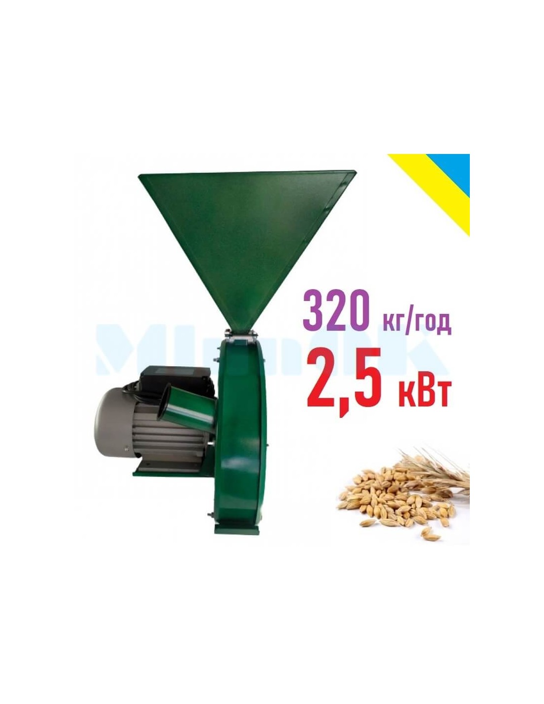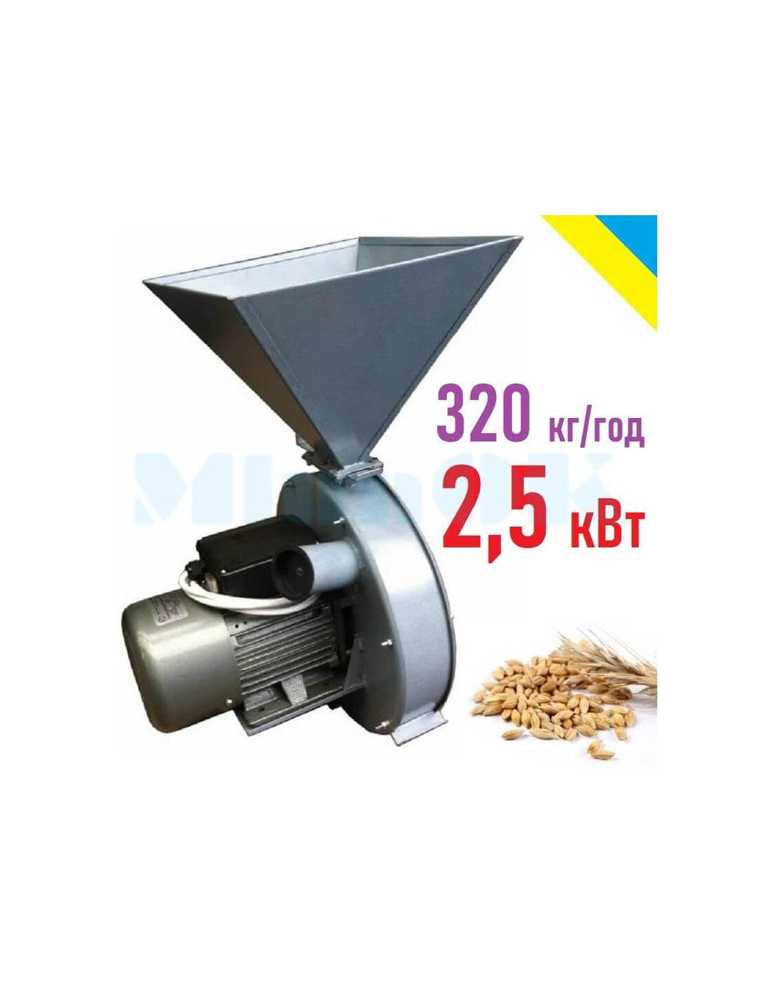 Przydomowy młynek do zboża, przeznaczony do produkcji mieszanek paszowych dla zwierząt domowych i drobiu. Doskonale rozdrabnia kukurydzę, pszenicę, żyto, owies, rośliny strączkowe i wszelkie zboża, a także kolby kukurydzy. Zapewnia równomierne rozdrobnienie i posiada regulowaną frakcję rozdrobnienia. Silnik o mocy 2,5 kW zapewnia wydajność 320 kg na godzinę ziarna i 160 kg na godzinę kolb. Działa z sieci 220 V.