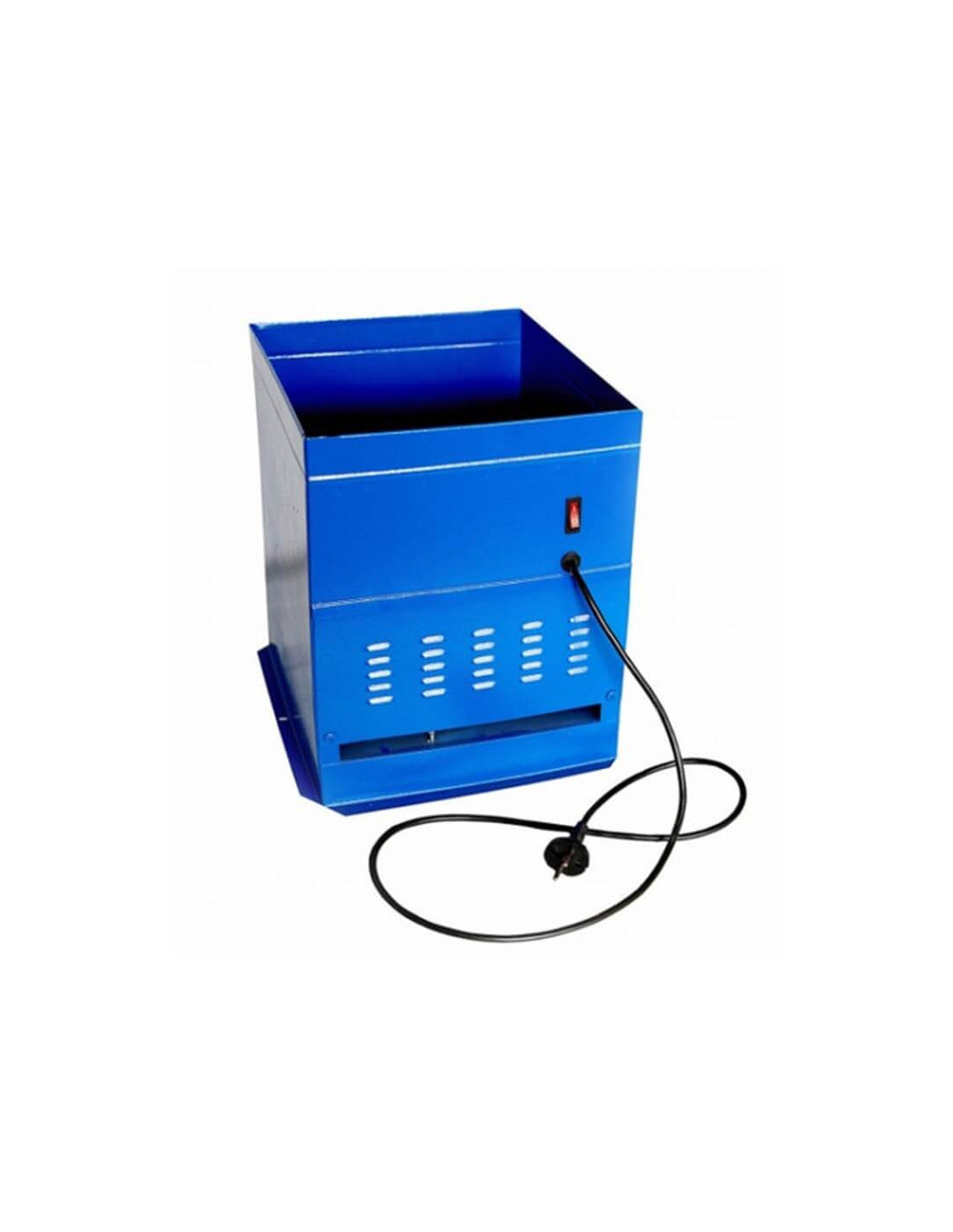 - Korpus urządzenia jest pomalowany na kolor jasnoniebieski, a ściany mają grubość 0,7 mm. Silnik znajduje się wewnątrz obudowy, na wale którego zamontowane są noże. Frakcję kruszącą ustalają dwa sita z oczkami 5 mm.