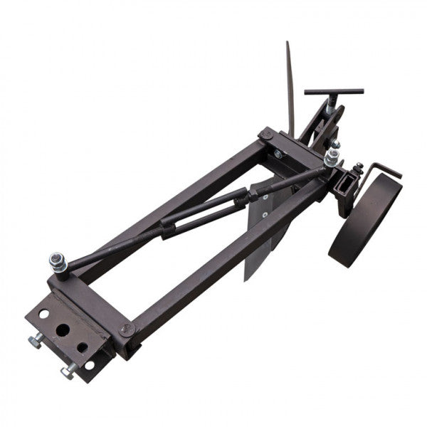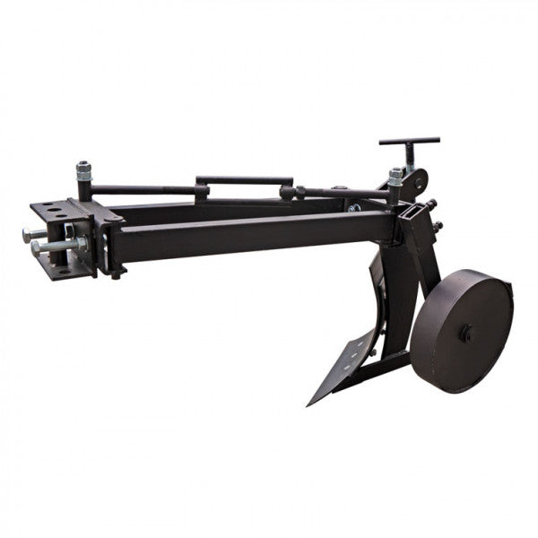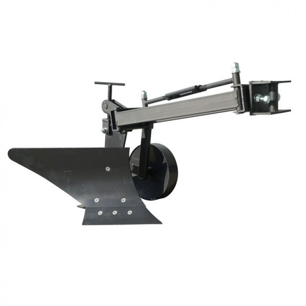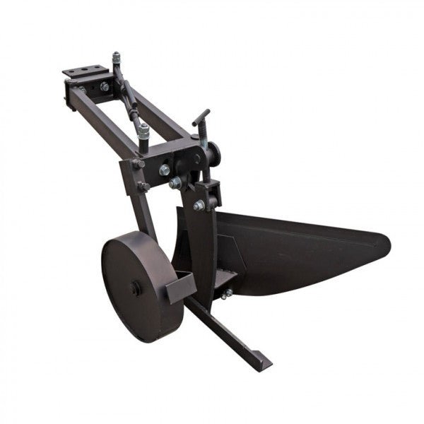 Pług do ciągnika jednoosiowego model PL8 wykonany w oparciu o podłużną ramę. Rama u podstawy posiada ruchomy równoległobok, który umożliwia przesuwanie korpusu pługa względem osi ciągnika jednoosiowego bez zmiany jego położenia kątowego za pomocą drążka regulacyjnego.