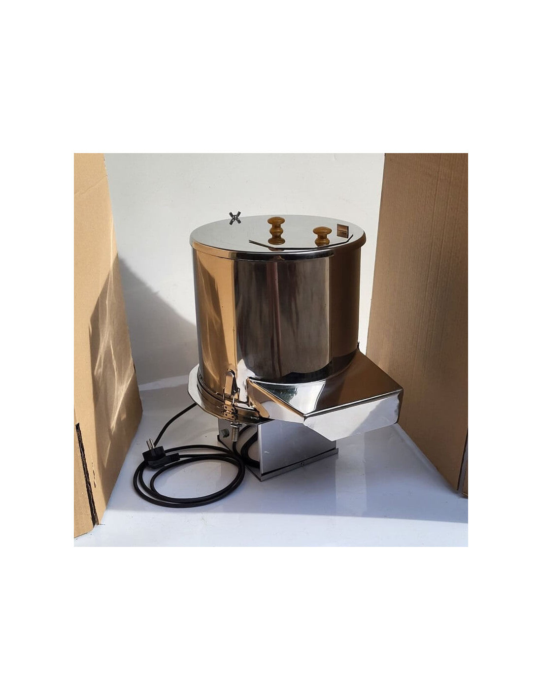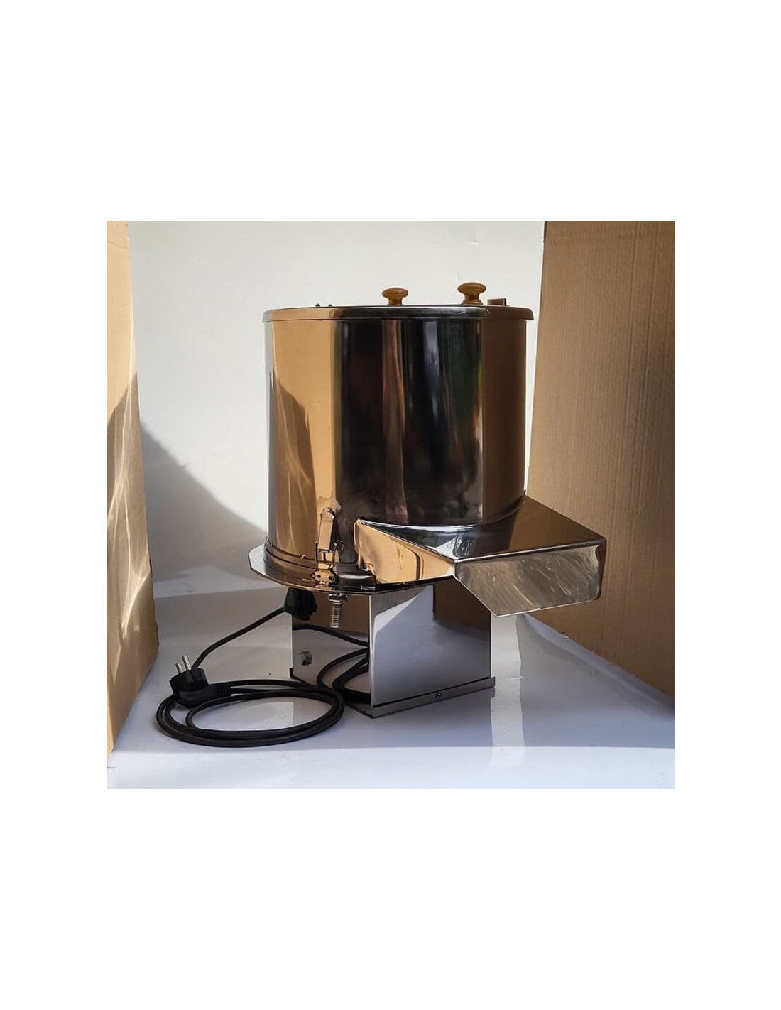 Przecinarka elektryczna, moc silnika 350 W, moc robocza 180 W, prędkość dysku 1500 obr/min, wykonana ze stali nierdzewnej, pojemność 12 litrów, wydajność do 400-420 kg/h roślin okopowych, warzyw i owoców. Waga 15 kg.