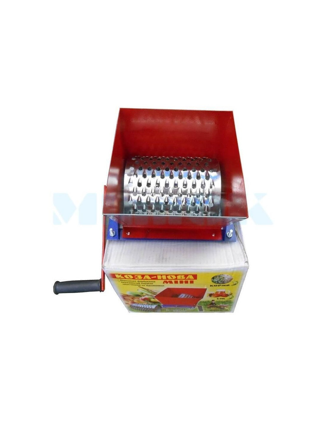 Ręczny rozdrabniacz do warzyw i owoców przeznaczony do stosowania w gospodarstwach domowych i gospodarstwach rolnych do wysokiej jakości i szybkiego siekania roślin okopowych, warzyw i owoców na potrzeby przygotowania paszy dla zwierząt i drobiu. Posiada tarkę bębnową z ostrymi zębami. Surowiec ładowany jest od góry, rozdrobniony surowiec wyrzucany jest z modułu części rozdrabniacza. Działa rozdzielczo i posiada wygodny uchwyt.