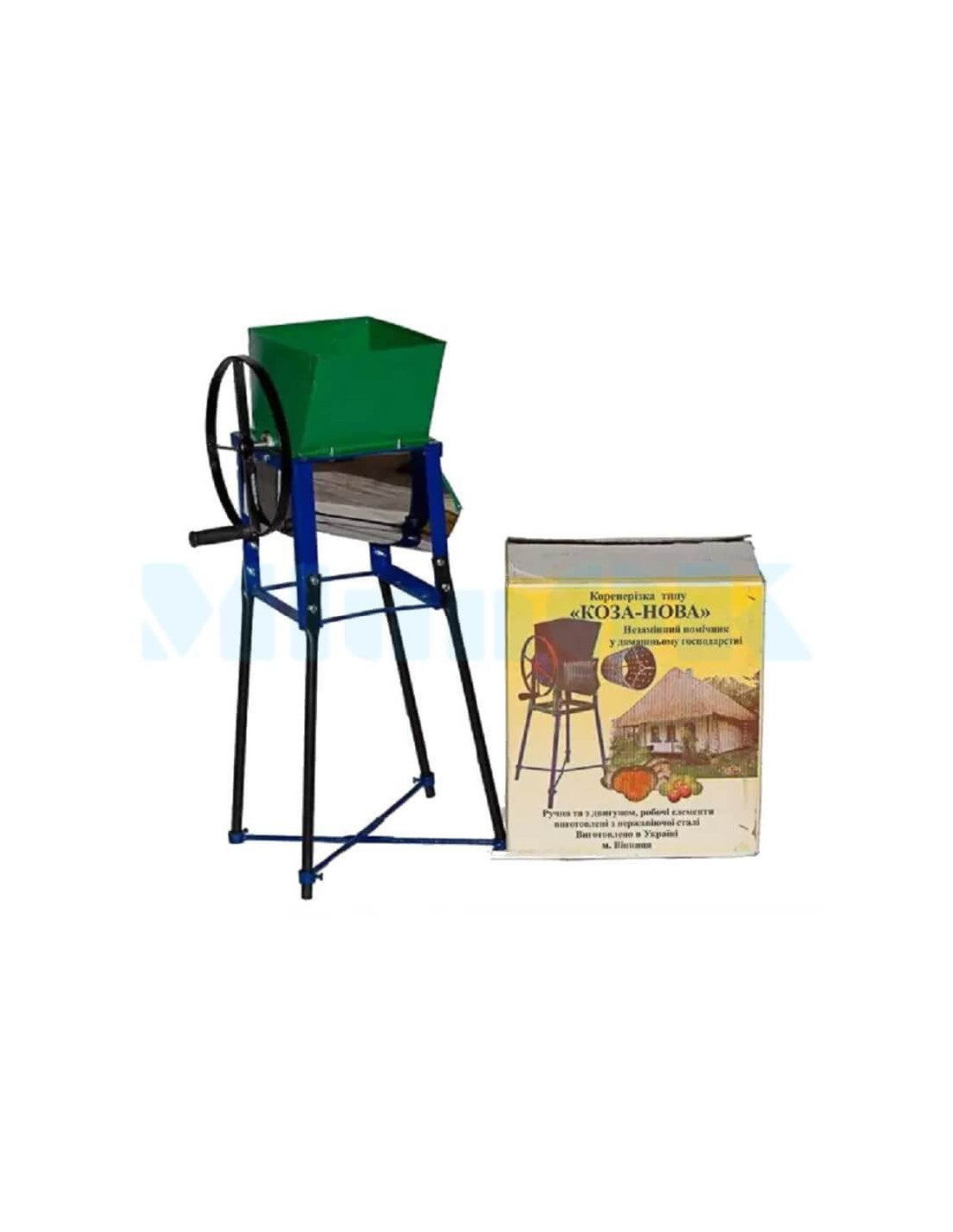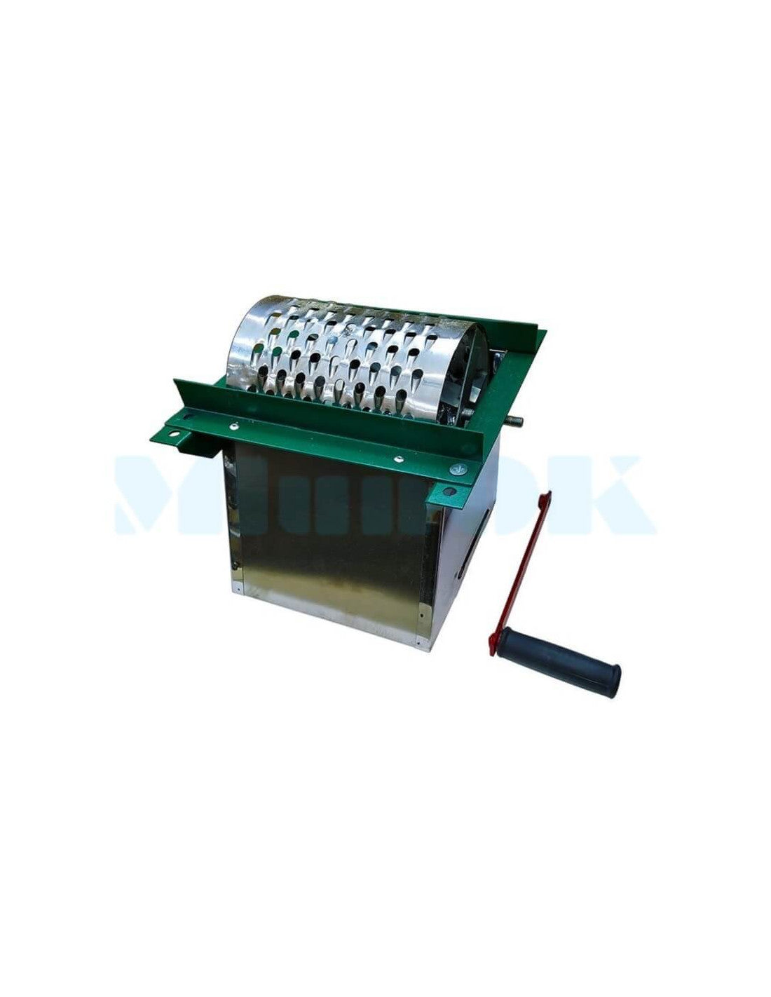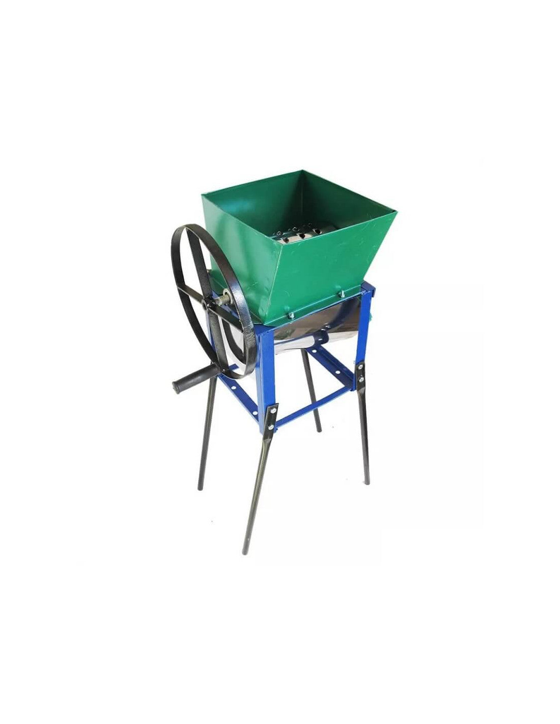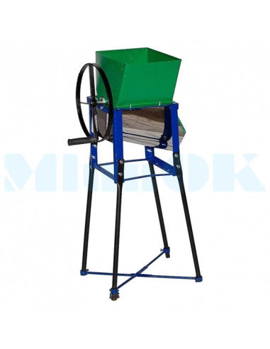 Ręczny rozdrabniacz do warzyw i owoców przeznaczony jest do stosowania w gospodarstwach domowych i gospodarstwach rolnych do wysokiej jakości i szybkiego siekania roślin okopowych, warzyw i owoców na potrzeby przygotowania paszy dla zwierząt i drobiu. Posiada tarkę bębnową z ostrymi zębami. Surowiec ładowany jest od góry, rozdrobniony surowiec wyrzucany jest z dolnej części rozdrabniacza. Działa ręcznie i posiada wygodny uchwyt. Wyposażony w nogi