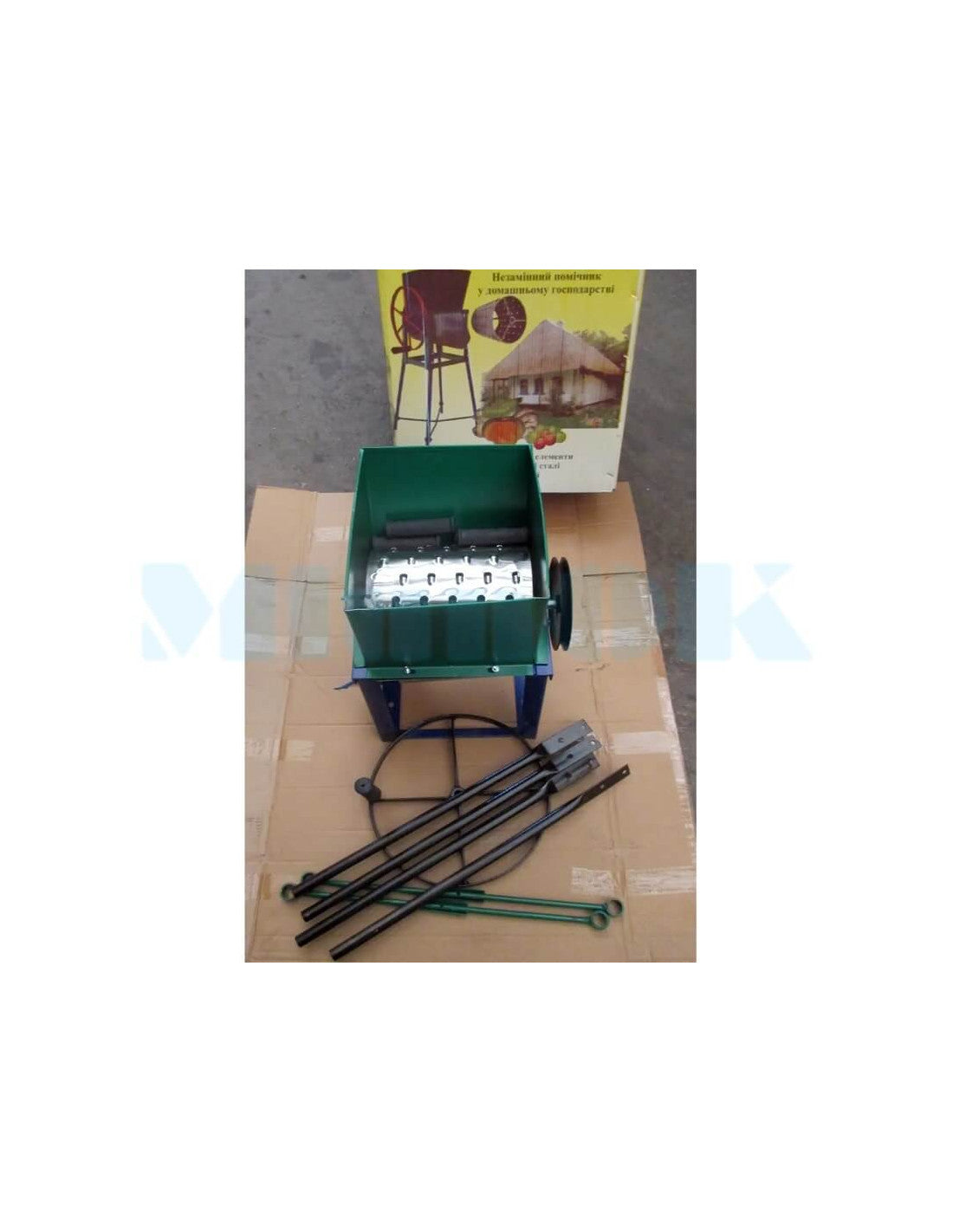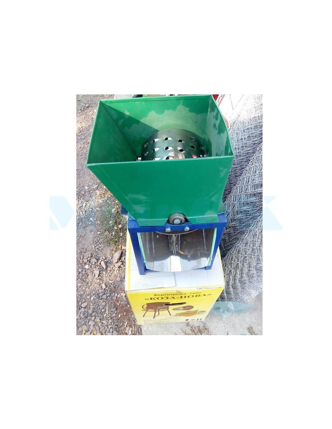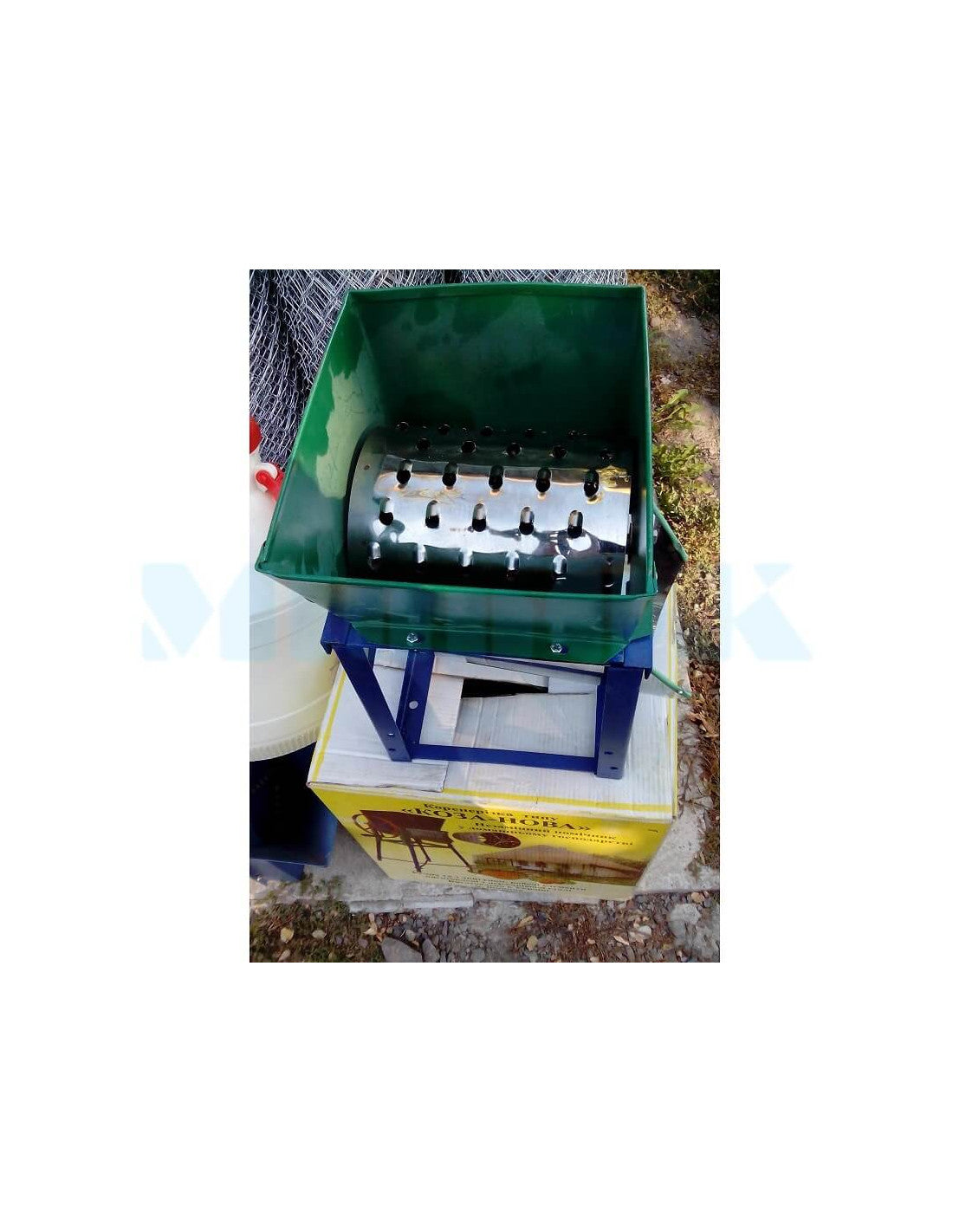 Ręczny rozdrabniacz do warzyw i owoców przeznaczony jest do stosowania w gospodarstwach domowych i gospodarstwach rolnych do wysokiej jakości i szybkiego siekania roślin okopowych, warzyw i owoców na potrzeby przygotowania paszy dla zwierząt i drobiu. Posiada tarkę bębnową z ostrymi zębami. Surowiec ładowany jest od góry, rozdrobniony surowiec wyrzucany jest z dolnej części rozdrabniacza. Działa ręcznie i posiada wygodny uchwyt. Wyposażony w nogi