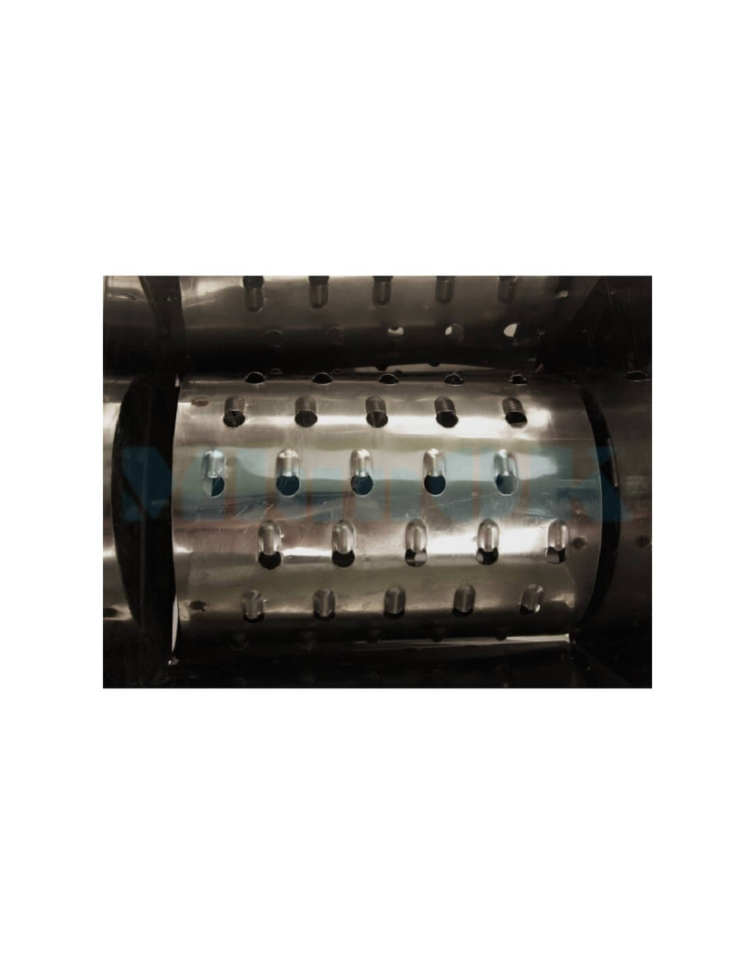 - Szeroki i wytrzymały zbiornik pozwala załadować odpowiednią ilość owoców, aby przyspieszyć proces siekania;