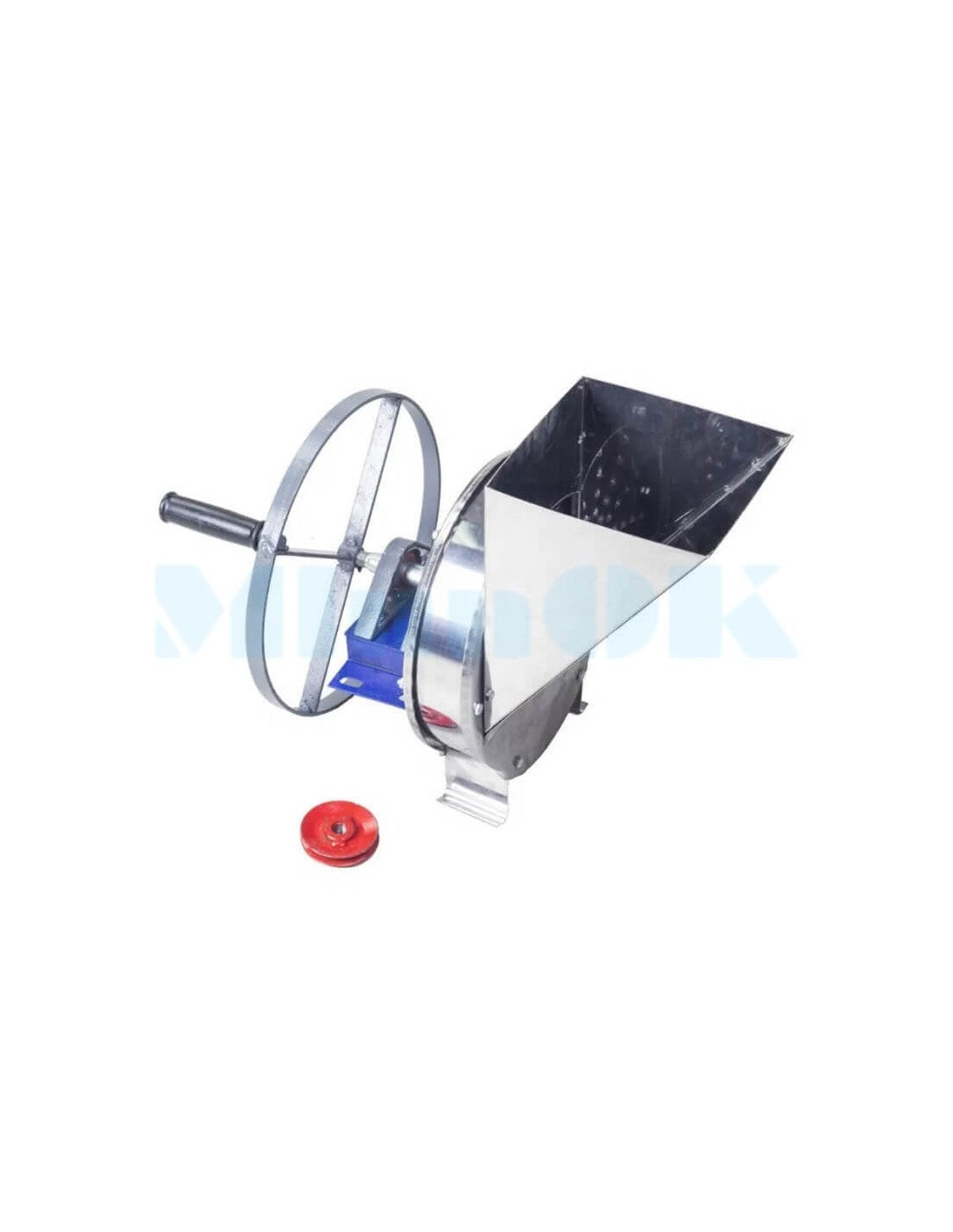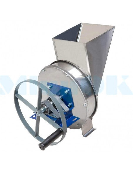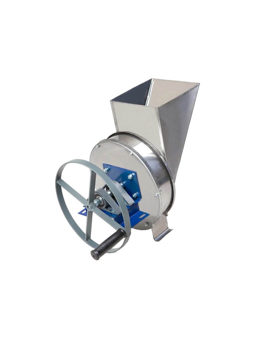 Załadunek surowców odbywa się od przodu, rozdrobniony surowiec wyrzucany jest z dolnej części rozdrabniacza. Napędzany napędem ręcznym.