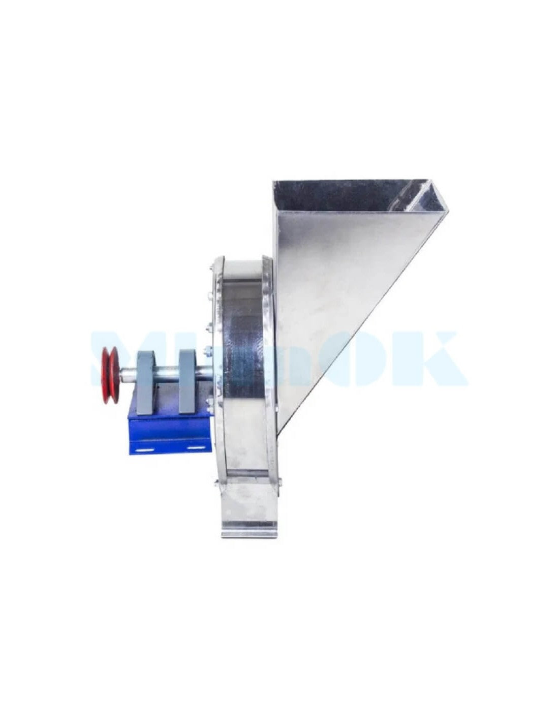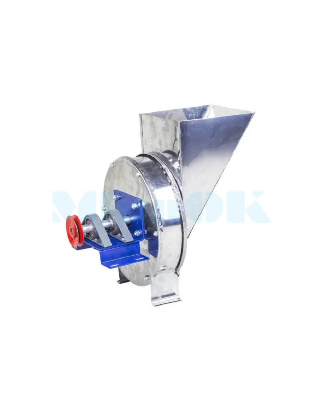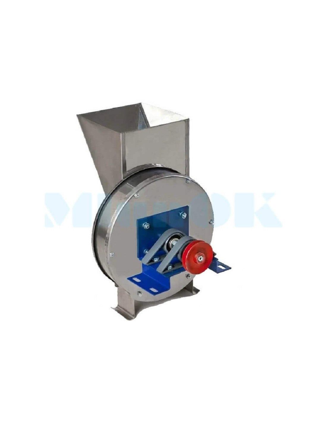Załadunek surowców odbywa się od przodu, rozdrobniony surowiec wyrzucany jest z dolnej części rozdrabniacza. Wykonane ze stali nierdzewnej.