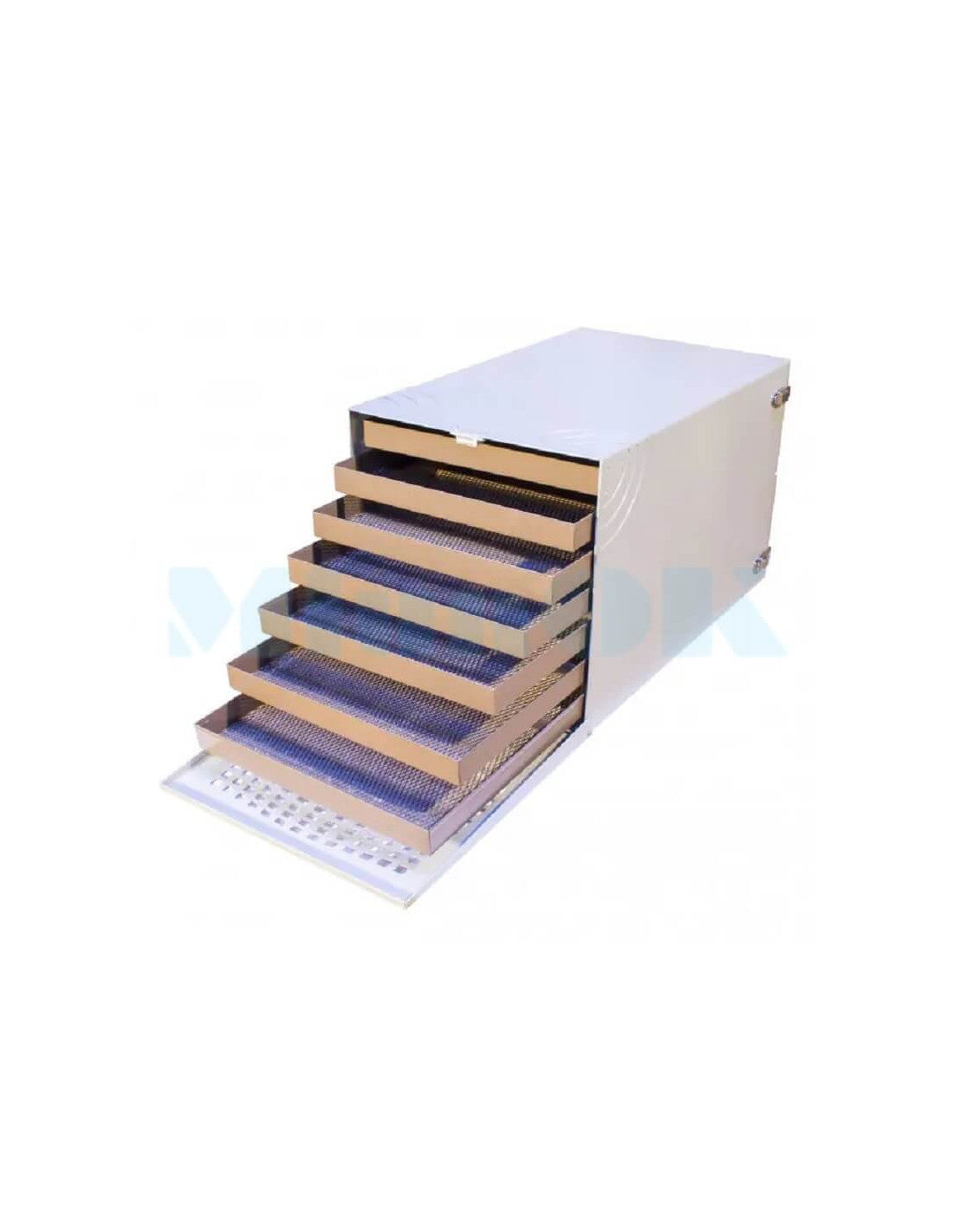 Łatwy w utrzymaniu i obsłudze, łatwy do czyszczenia. Charakteryzuje się niskim poziomem hałasu, co jest bardzo ważne podczas pracy! Taca suszarki podzielona jest na dwie równe części, co jest bardzo wygodne w użyciu.